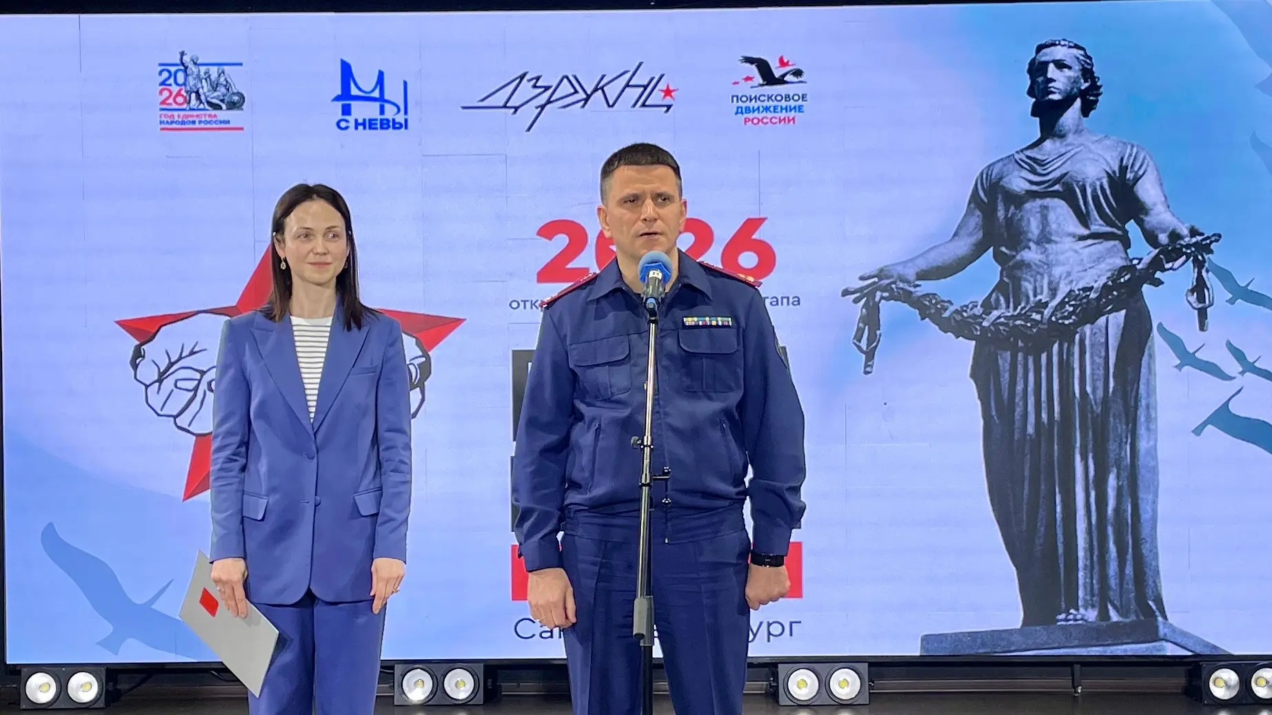 Первый заместитель руководителя Главного следственного управления Следственного комитета России по городу Санкт-Петербургу Виктор Петрович Козлов совместно со старшим помощником руководителя ГСУ СК России по городу Санкт-Петербургу (по общественно-политической работе) Светланой Александровной Мельниковой приняли участие в торжественной церемонии открытия Санкт-Петербургского этапа Всероссийской акции «Вахта Памяти 2026». Мероприятие состоялось в Доме народного творчества и досуга.