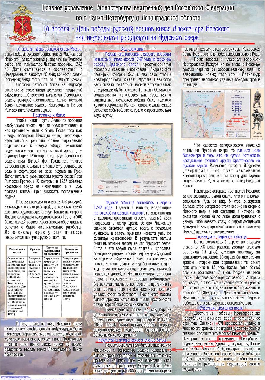 18 апреля — День победы русских воинов князя Александра Невского над немецкими рыцарями на Чудском озере