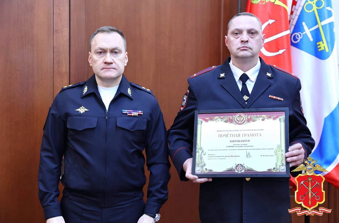 20 апреля в ходе проведения оперативного совещания начальник Главного управления МВД России по Санкт-Петербургу и Ленинградской области генерал-лейтенант Роман Плугин наградил ведомственными наградами, почетными грамотами и благодарностями особо отличившихся сотрудников различных подразделений полиции за добросовестное исполнение ими служебных обязанностей и высокие результаты деятельности.