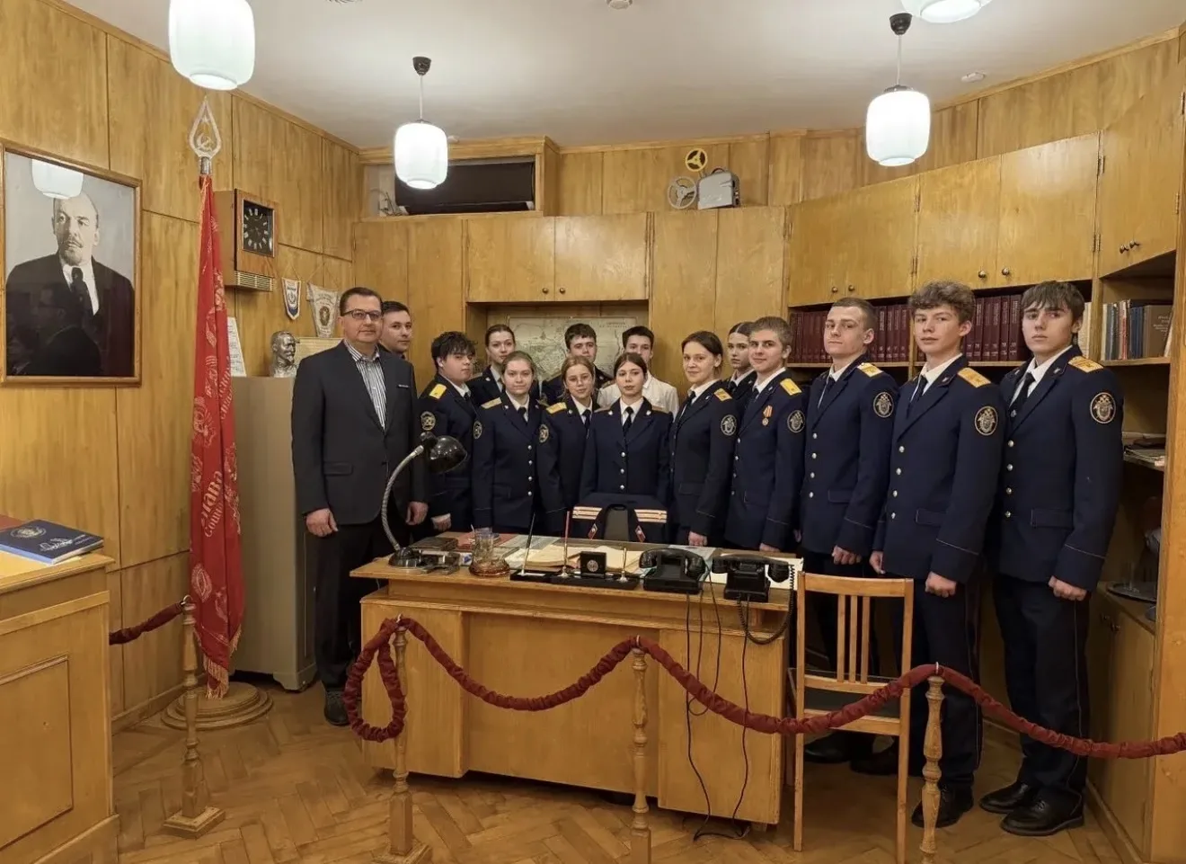 В рамках комплексной программы патриотического воспитания следователь следственного отдела по Центральному району ГСУ СК России по городу Санкт-Петербургу совместно с учащимися школы № 304 «Центр подготовки кадет» Центрального района города Санкт-Петербурга посетили музей «Кабинет начальника следствия» при ГСУ ГУ МВД России по городу Санкт-Петербургу и Ленинградской области. Данное мероприятие организовано при активном участии члена Общественного совета при ГСУ СК России по городу Санкт-Петербургу Владимира Аркадьевича Ребо.