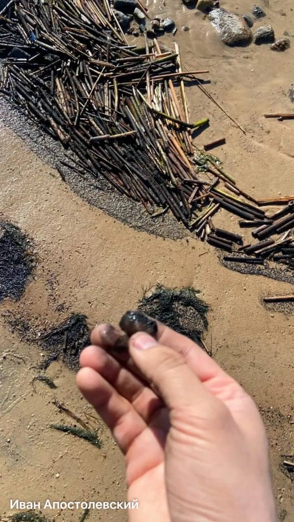 «Жижа видна и на камнях. Соглашусь, что на нефтепродукты не похоже. Возможно, это какой-то осадок, который осел на воду, а волнами его прибило к берегу», — рассказал он 47news.