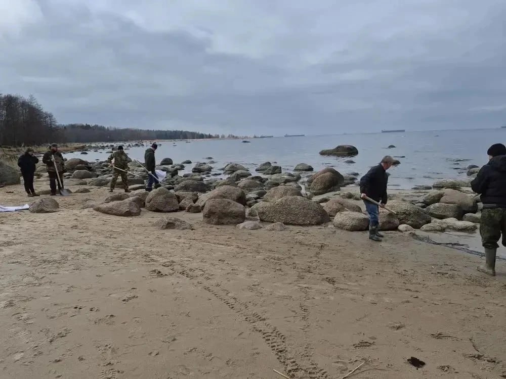 На берегу Финского залива, где сегодня обнаружили нефтепродукты, весь день шла уборка