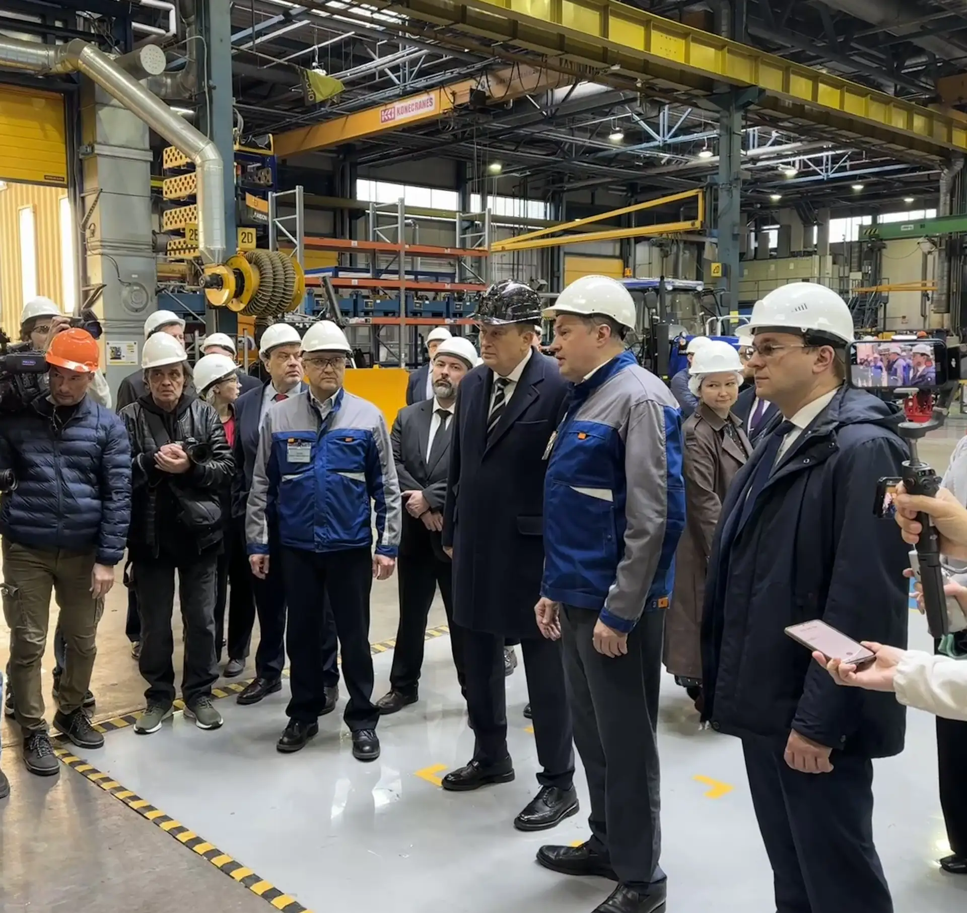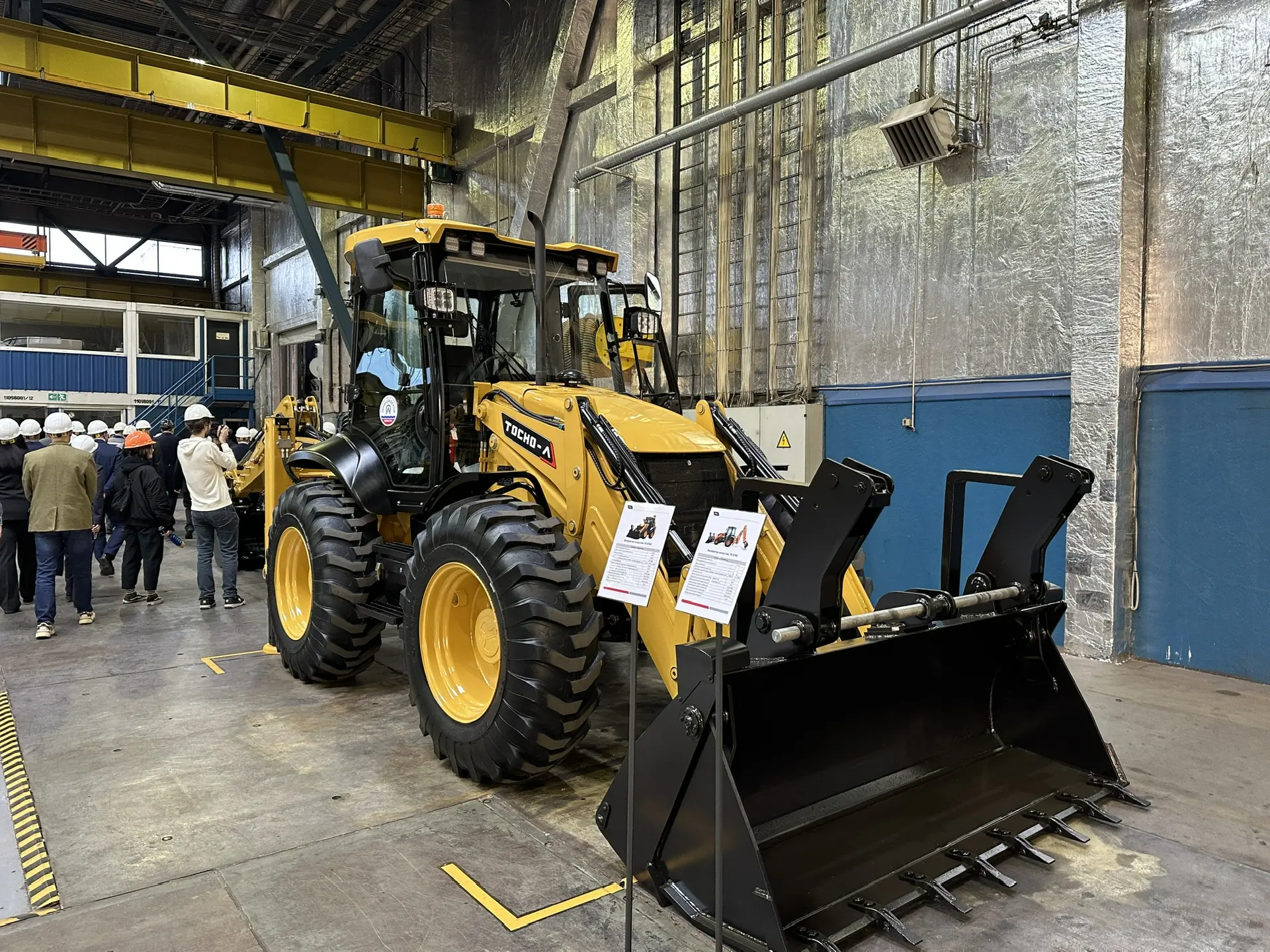 Губернатор осмотрел цеха завода «Тосно», который простаивал после ухода иностранного инвестора в 2022 году: сварочный и сборочный, где ему показали конвейер, готовые экскаватор-погрузчик, бульдозер, коммунальную машину и особенно новый пилотный экскаватор-погрузчик.