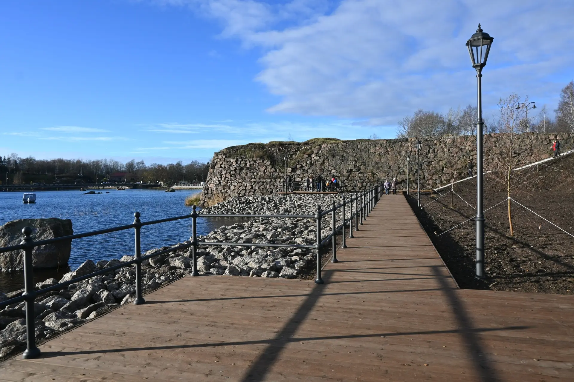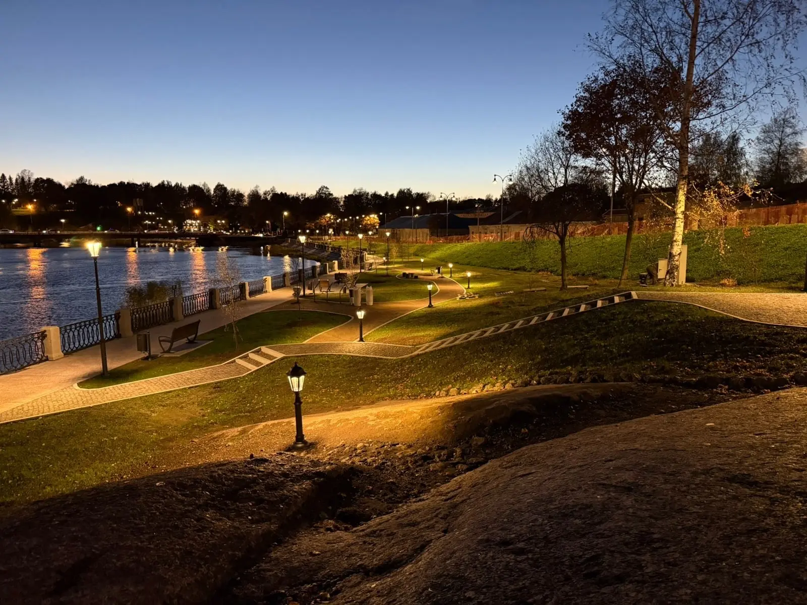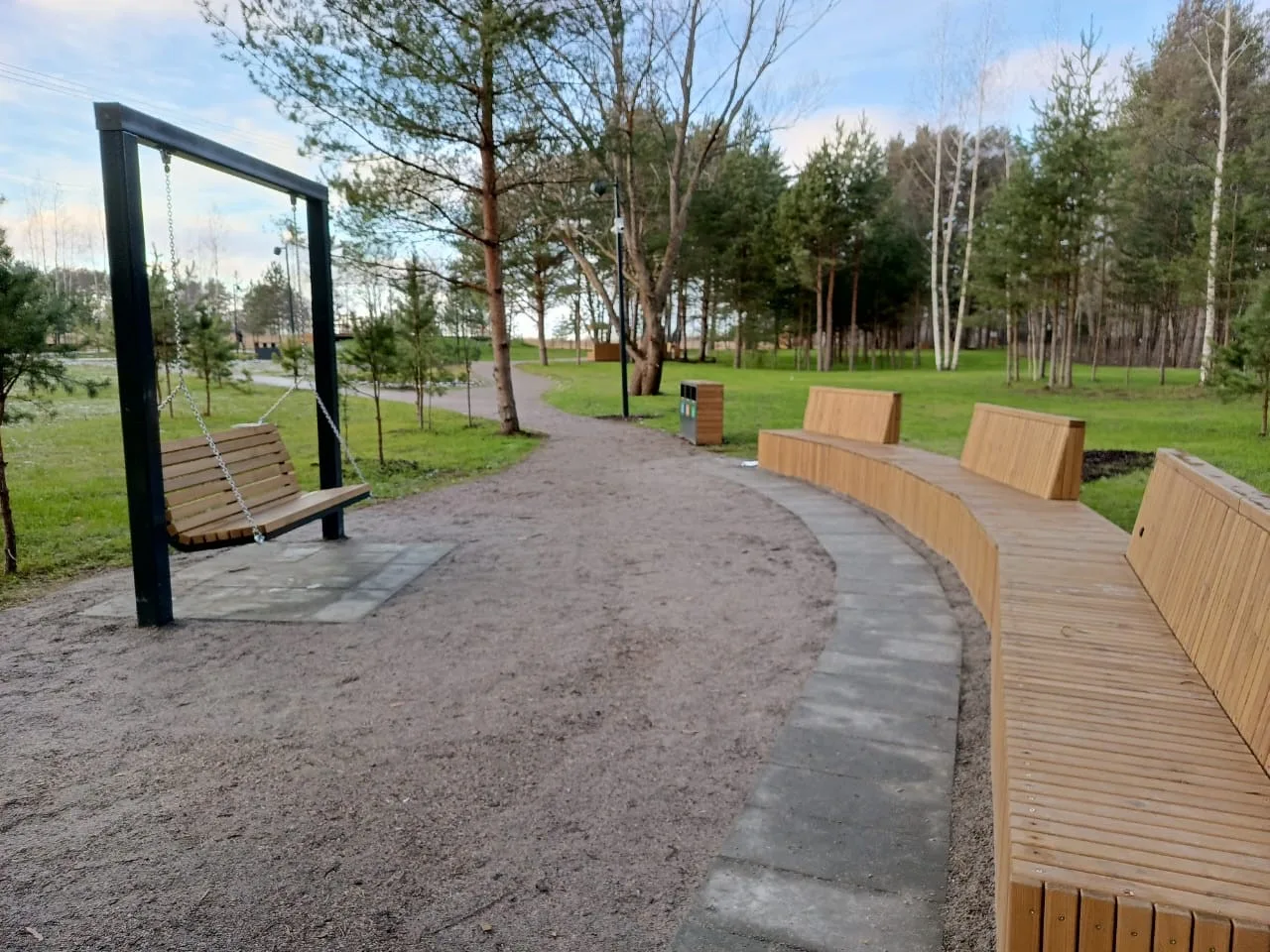 Там обустроены пешеходные дорожки с различными видами покрытий, установлены малые архитектурные формы: амфитеатр, пергола, качели, детское игровое оборудование, смонтированы энергоэффективное освещение и видеонаблюдение, а также лестничный спуск к воде.