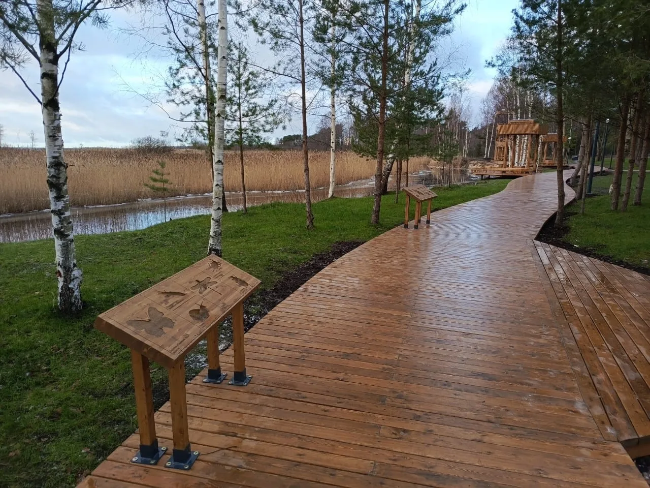 Еще один яркий пример – благоустройство прибрежной территории у городского пляжа в городе Сосновый Бор Ленинградской области. Территория получила четкое функциональное зонирование, дорожно-тропиночную сеть, амфитеатр, два пирса, смотровую площадку.