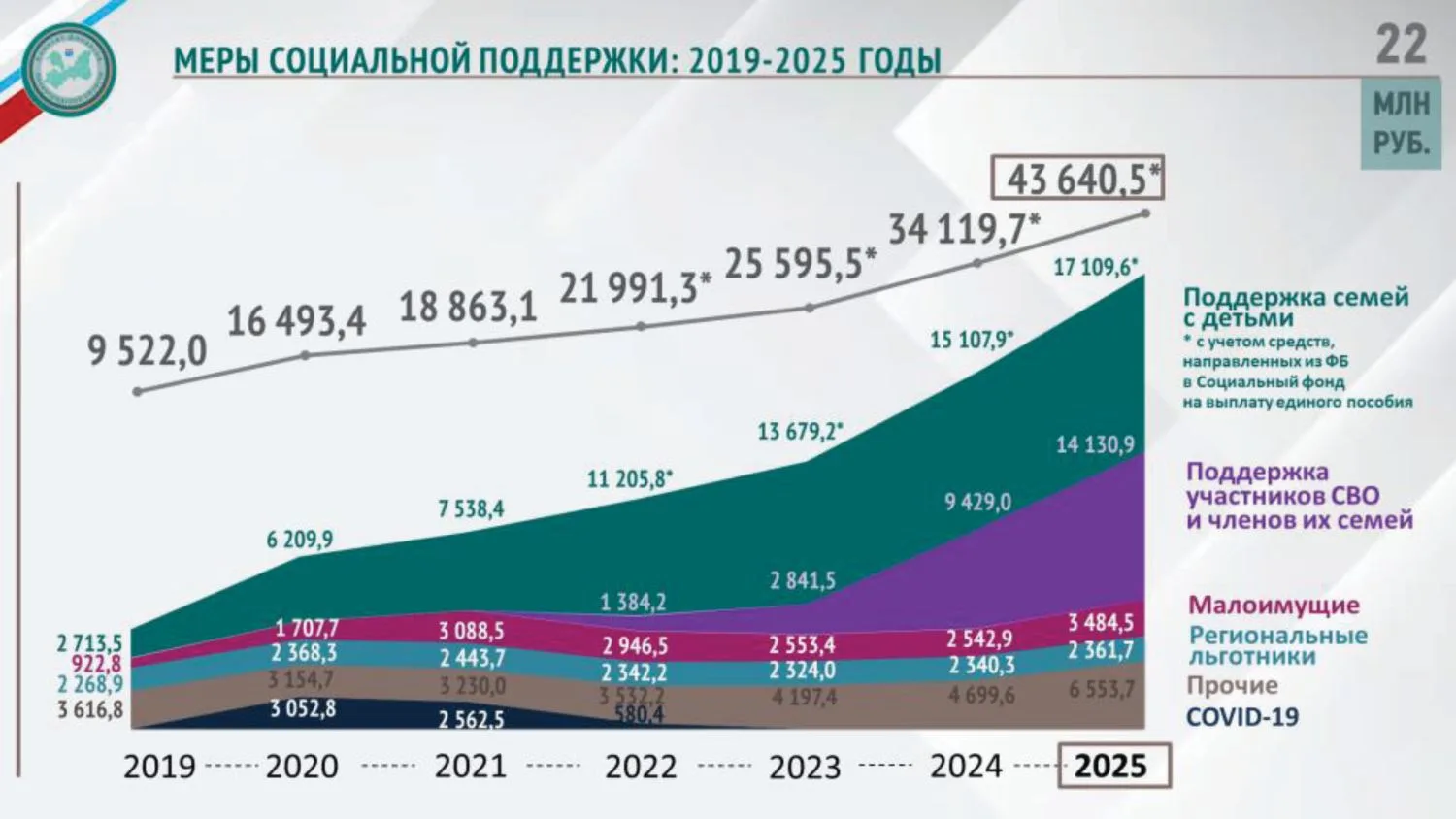 Поддержка семей с детьми – 17.1 млрд руб. (+18% к 2024 году).