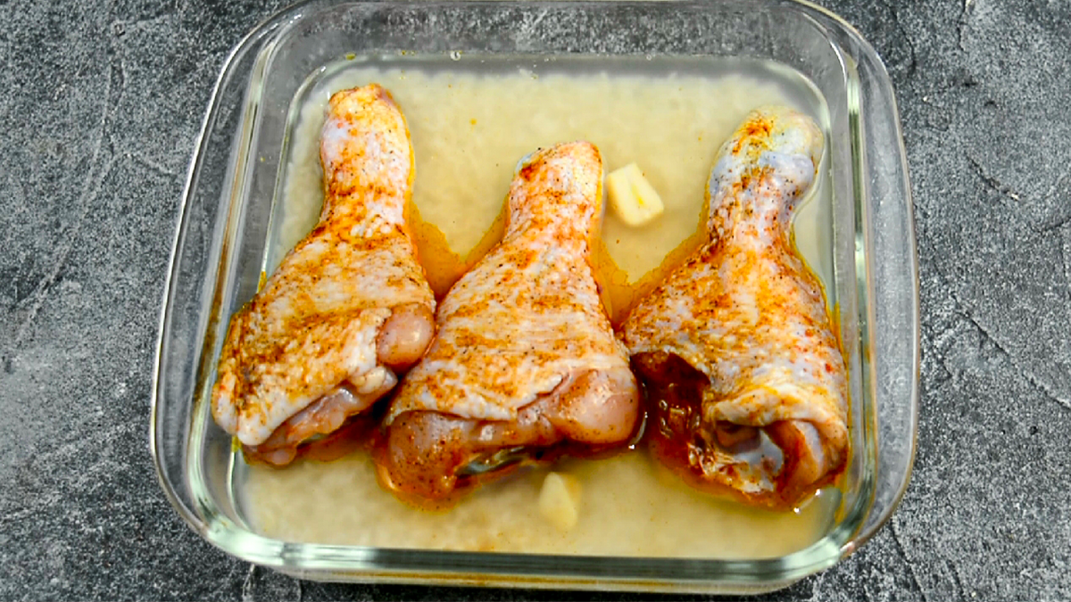 Теперь пора заняться куриными голенями. Их нужно также хорошенько посолить и приправить по вкусу. Рекомендуется использовать готовые смеси специй, но стоит быть внимательным к составу — многие из них уже содержат соль, что может привести к пересолению блюда.