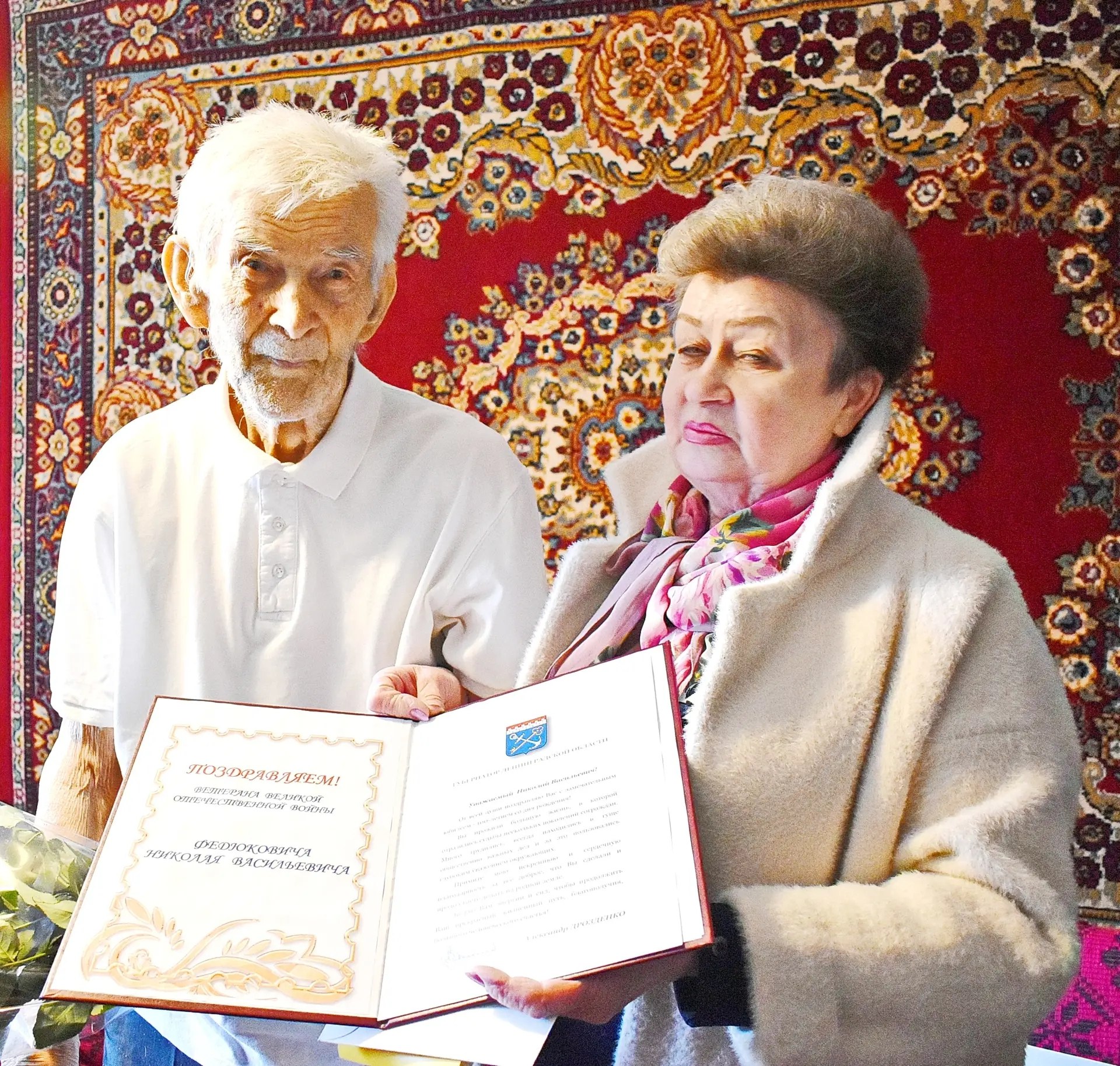 Юбиляр - участник Великой Отечественной войны. Николай Васильевич был удостоен двух медалей «За отвагу», медалей «За боевые заслуги», «За взятие Кенигсберга», «За Победу над Германией», «Маршала Жукова Г.К.», знака «Фронтовик» и еще 16 медалей. Он также награжден орденами «Отечественной войны 2 степени» и «Генерала армии Маргелова В.Ф.».