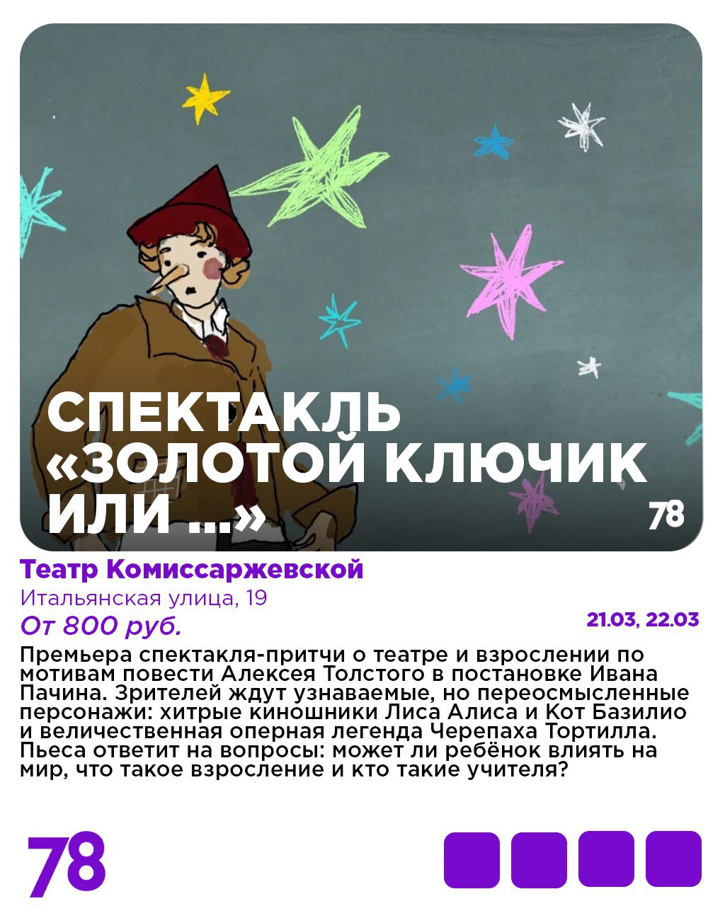 Если же классика вам совсем приелась, то определённо стоит приобщиться к молодёжным веяниям, посетив открытие тура юных блогеров или открыв для себя современное прочтение «Буратино».