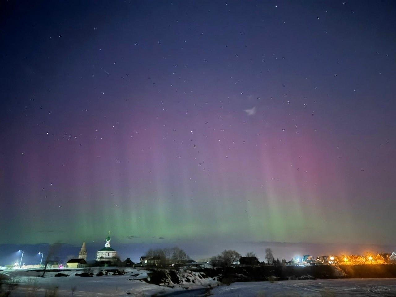 Сильнейшая за последние два месяца магнитная буря обрушилась на Землю и вызвала полярные сияния, которые ночью могли увидеть жители России.