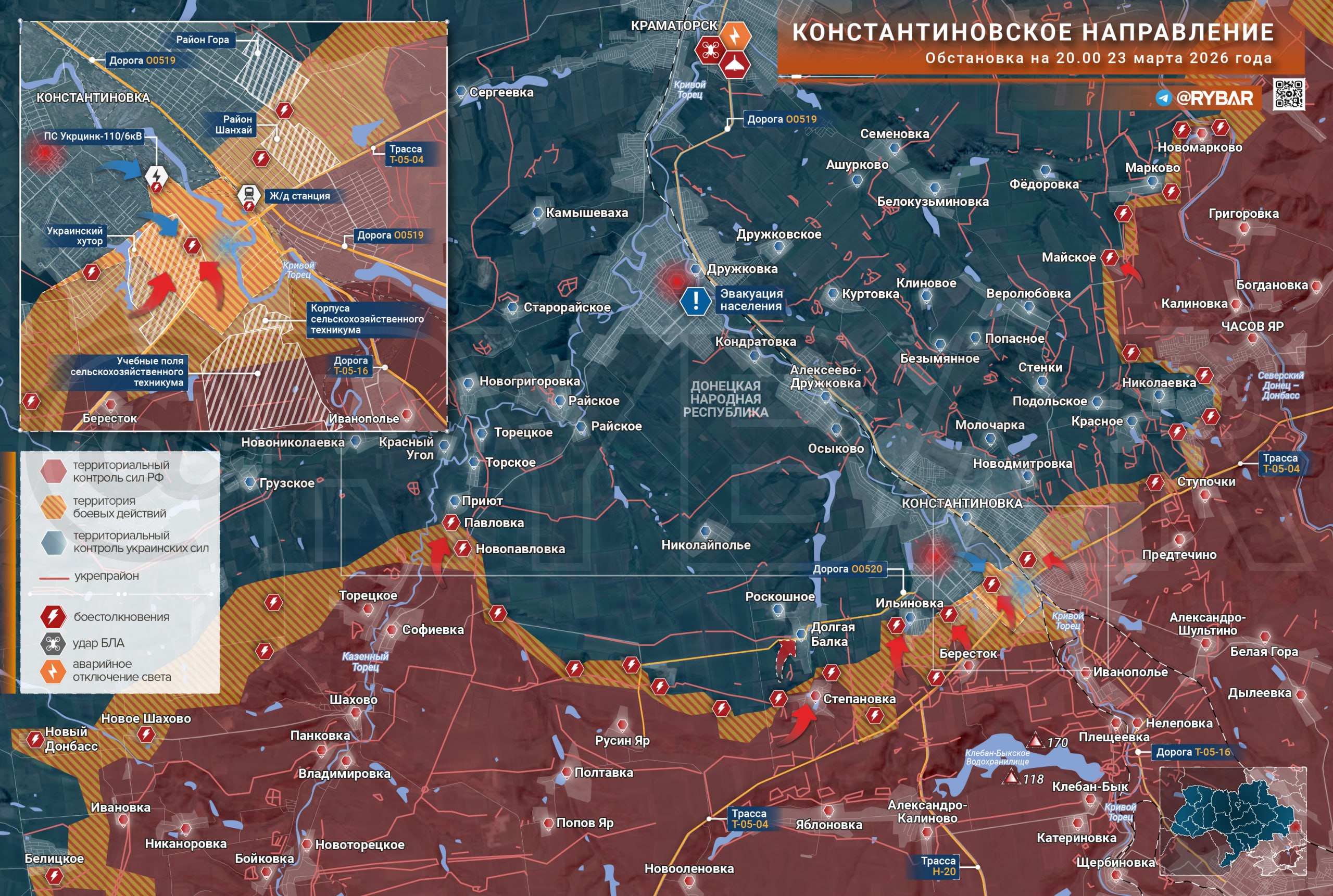 На Константиновском направлении продолжаются столкновения малых групп в городской застройке, российские штурмовики углубляются ближе к центру с тяжелыми боями.