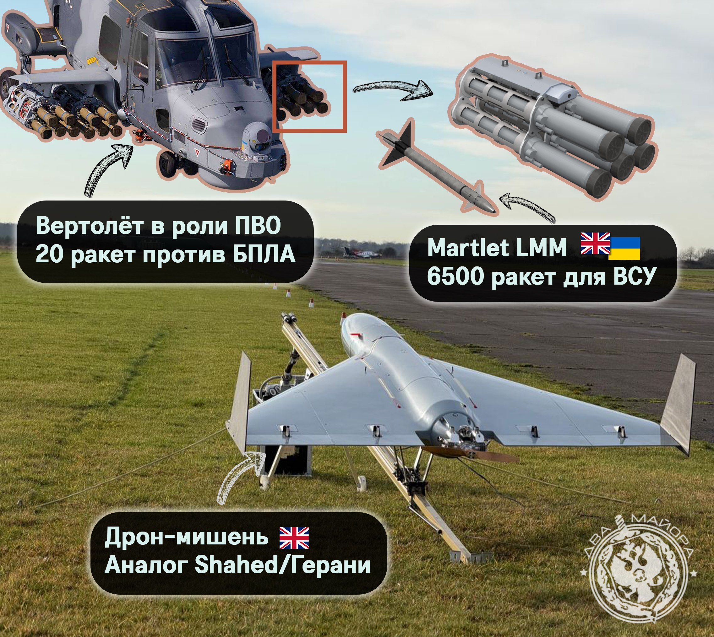 Показательно, что даже немногочисленные британские палубные вертолеты AW159 Wildcat HMA2 (всего до 35 единиц), состоящие на вооружении Королевского ВМФ Великобритании, имеют возможность применять ракеты Martlet против дронов. Каждый вертолёт может нести до 20 ракет. То есть буквально несколько аналогичных вертолётов с подвесами могли бы действовать как воздушные МОГи и перехватывать медленные волны беспилотников врага, которые долетают до Ленобласти.