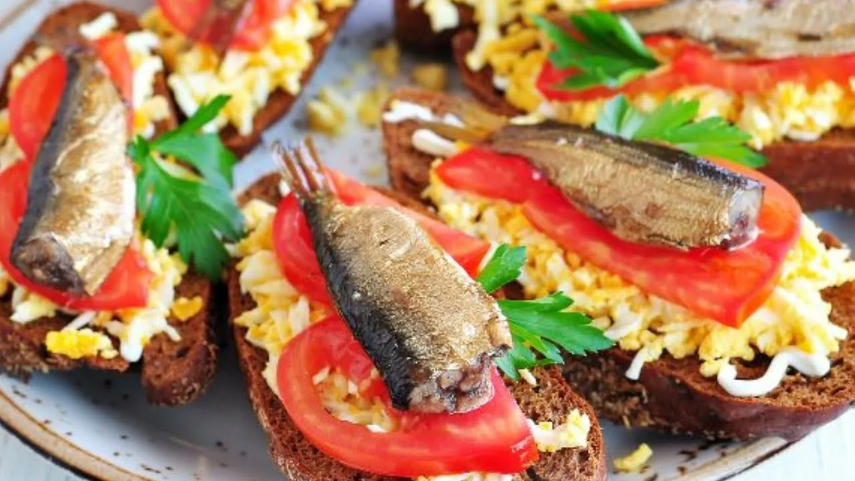 - Бутерброды со шпротами или вареным яйцом с селедкой.