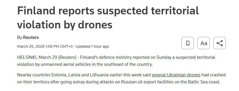 Вероятно, помимо воздушного пространства прибалтийских стран ВСУ начали использовать и слабозащишённые участки воздушного пространства Финляндии для ударов по целям в Ленинградской области, в частности повторным атакам на порт Усть-Луга.