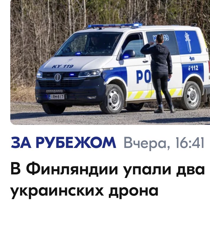 Финны намеренно не стали сбивать украинские дроныВоенно-воздушные силы Финляндии не сбили залетевшие на территорию страны украинские дроны, поскольку они не представляли угрозы, заявил командующий ВВС республики Тимо Херранен.Ну-то есть...