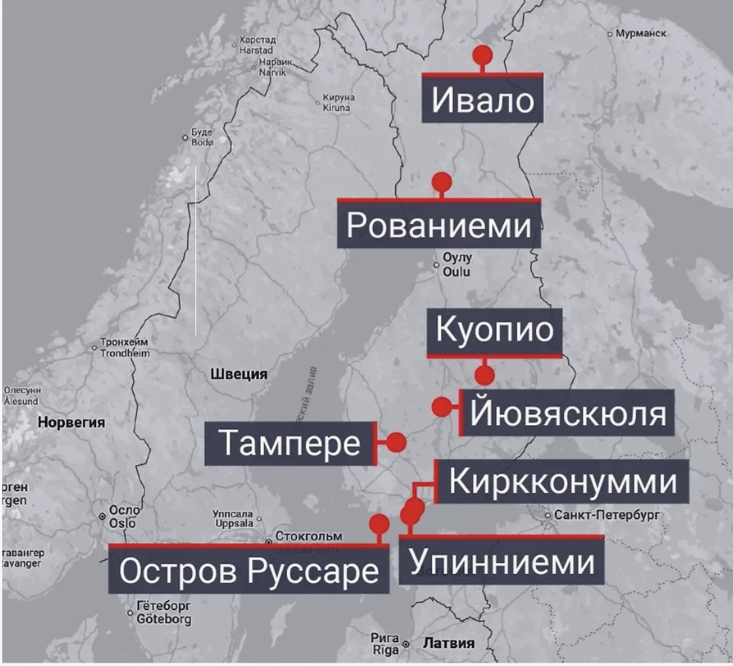 Ну конечно же "украинские дроны" - это роскошная шляпа с клюквой и лапшой, свисающих с полей на уши.На прилагаемом скрине - базы НАТО в Финляндии, откуда на самом деле могли взлетать "украинские" БПЛА, атакуя Ленинградскую область.