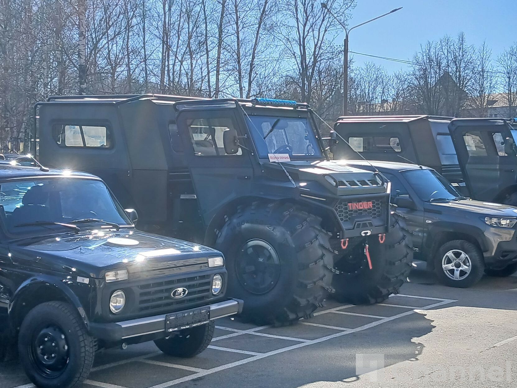 Новые внедорожники, вездеходы и пожарные автоцистерны осмотрел губернатор Ленинградской области Александр Дрозденко.
