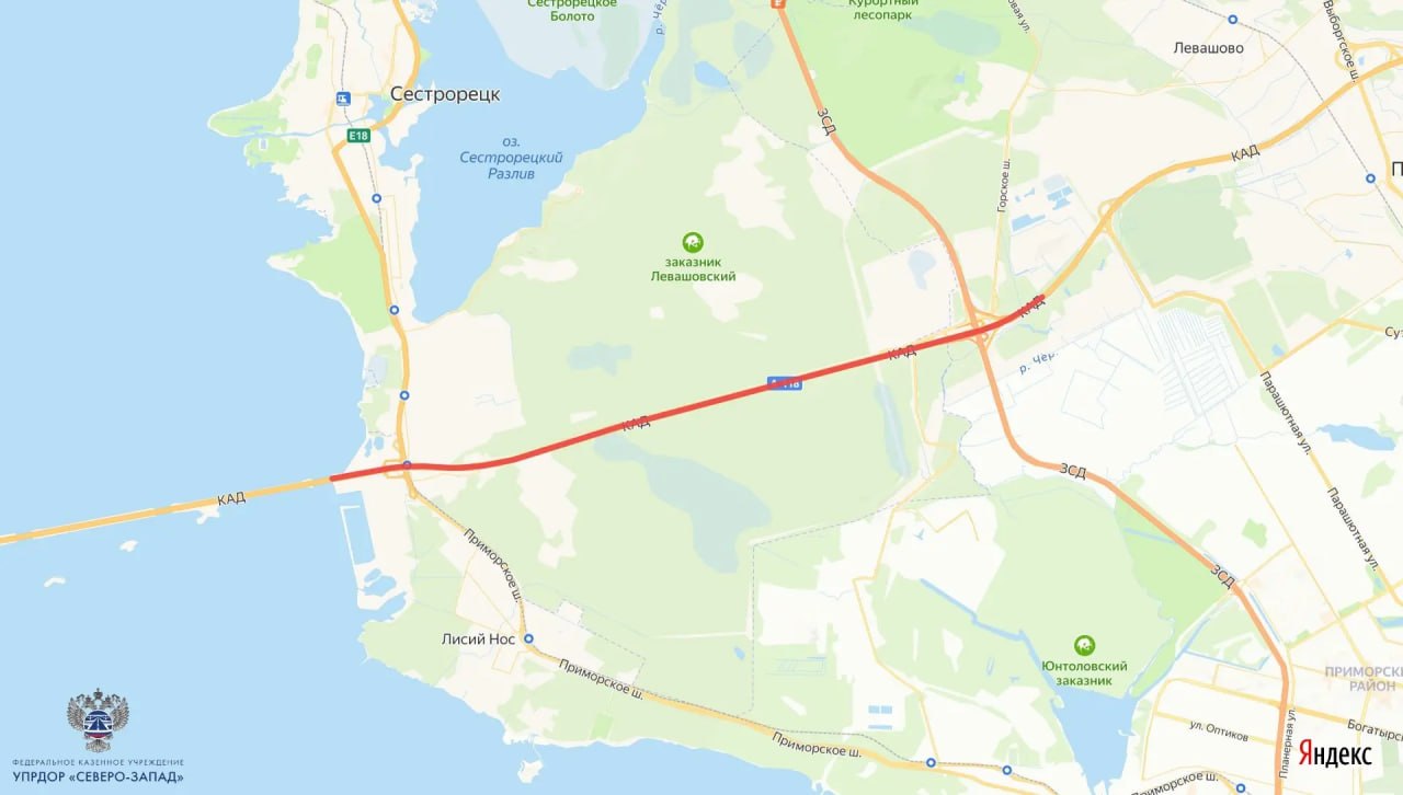О перекрытии на участке от развязки с 8 апреля по 1 сентября сообщили в ФКУ Упрдор «Северо-Запад».