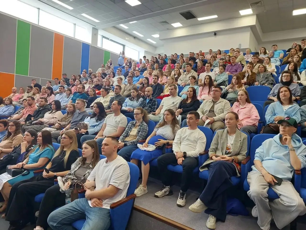 В зале самого современного и оснащенного центра региона собралось больше 200 человек. Мамы, которые ожидают девочек, пришли в розовом, кто вынашивает мальчиков — в голубом. У счастливых будущих родителей было много вопросов, на которые отвечали специалисты по акушерству, гинекологии, неонантологии, грудному вскармливанию. Здесь же организовали мастер-класс по правильному дыханию в схватках.
