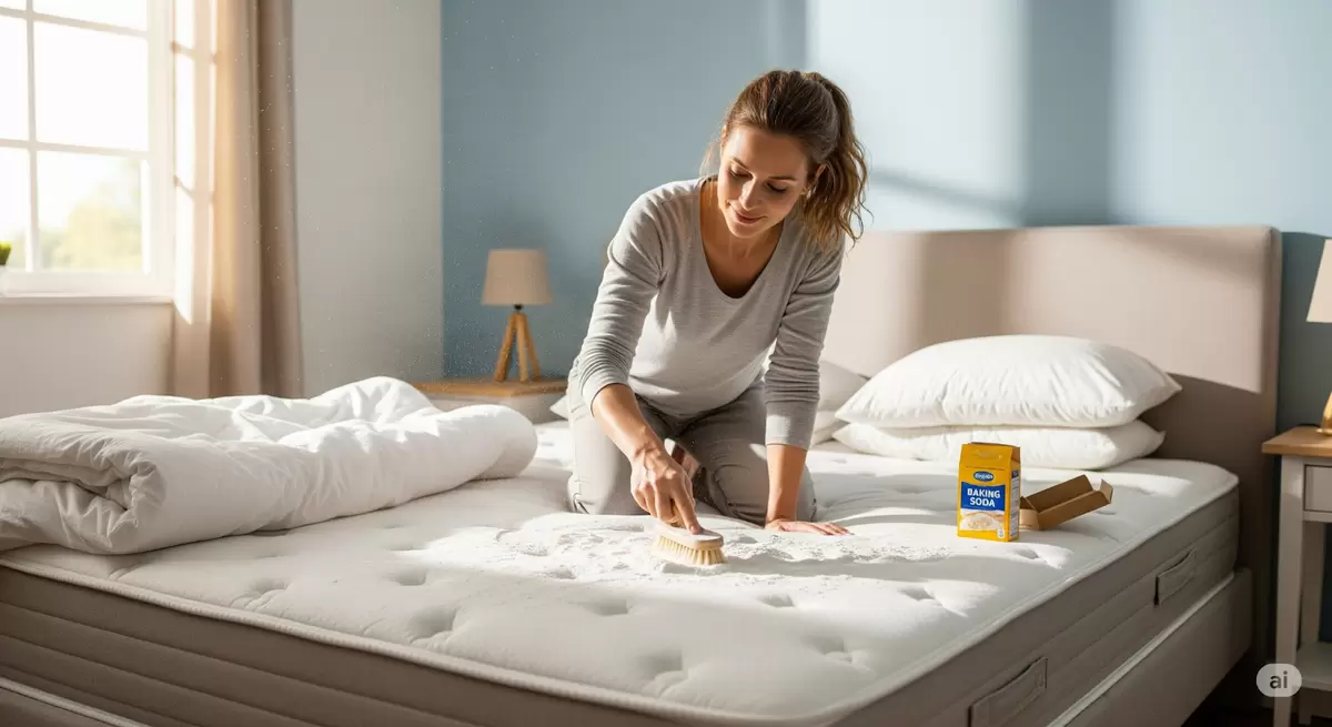 - Оживление матрасов и ковров: Чтобы избавиться от неприятных запахов, достаточно посыпать поверхность ковра или матраса пищевой содой, оставить на 30–60 минут, а затем всосать остатки пылесосом. Добавление нескольких капель эфирного масла сделает процесс еще более приятным.