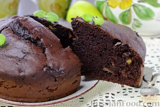 - Шоколадный пирог с яблоками: Пышный и ароматный десерт на основе кефира с добавлением ярких кусочков яблок и насыщенным шоколадным вкусом. Этот пирог обязательно станет украшением любого стола!
