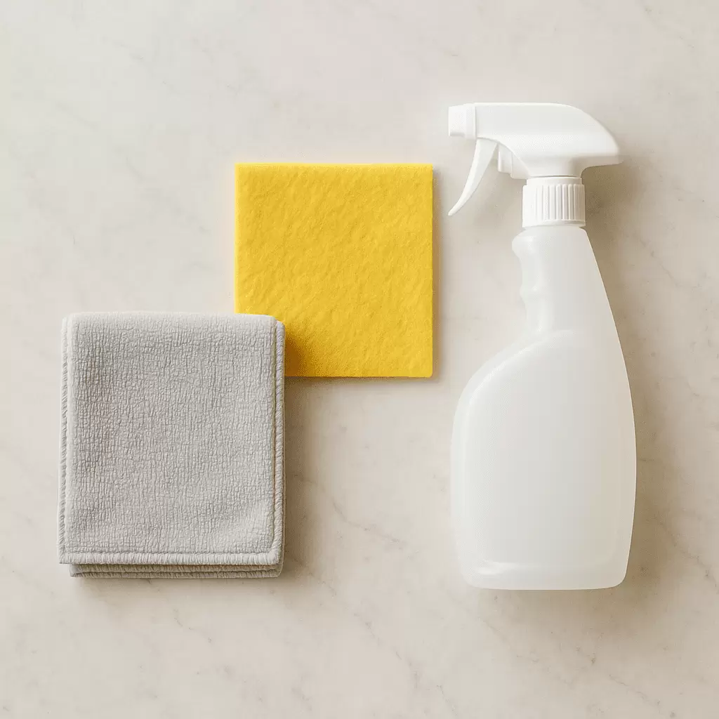 - Сухая очистка: Для начала стоит удалить пыль и крупные частицы с поверхности. Для этого идеально подойдет мягкая салфетка из микрофибры. Будьте осторожны: даже небольшие песчинки могут поцарапать камень при влажной чистке.