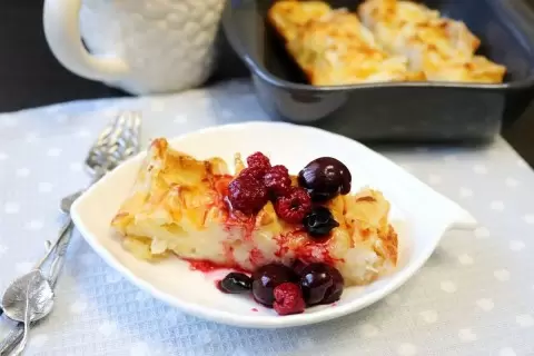 В видео представлен соленый пирог с зеленью, который подавали с острым соусом. Вдохновившись, было решено адаптировать рецепт под свои предпочтения, и так родился сладкий вариант для завтрака. Пирог дополнен свежими ягодами, что делает его еще более заманчивым.