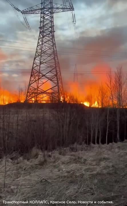 Трава горит возле Гатчинской ЛЭП недалеко от Торфопредприятия
