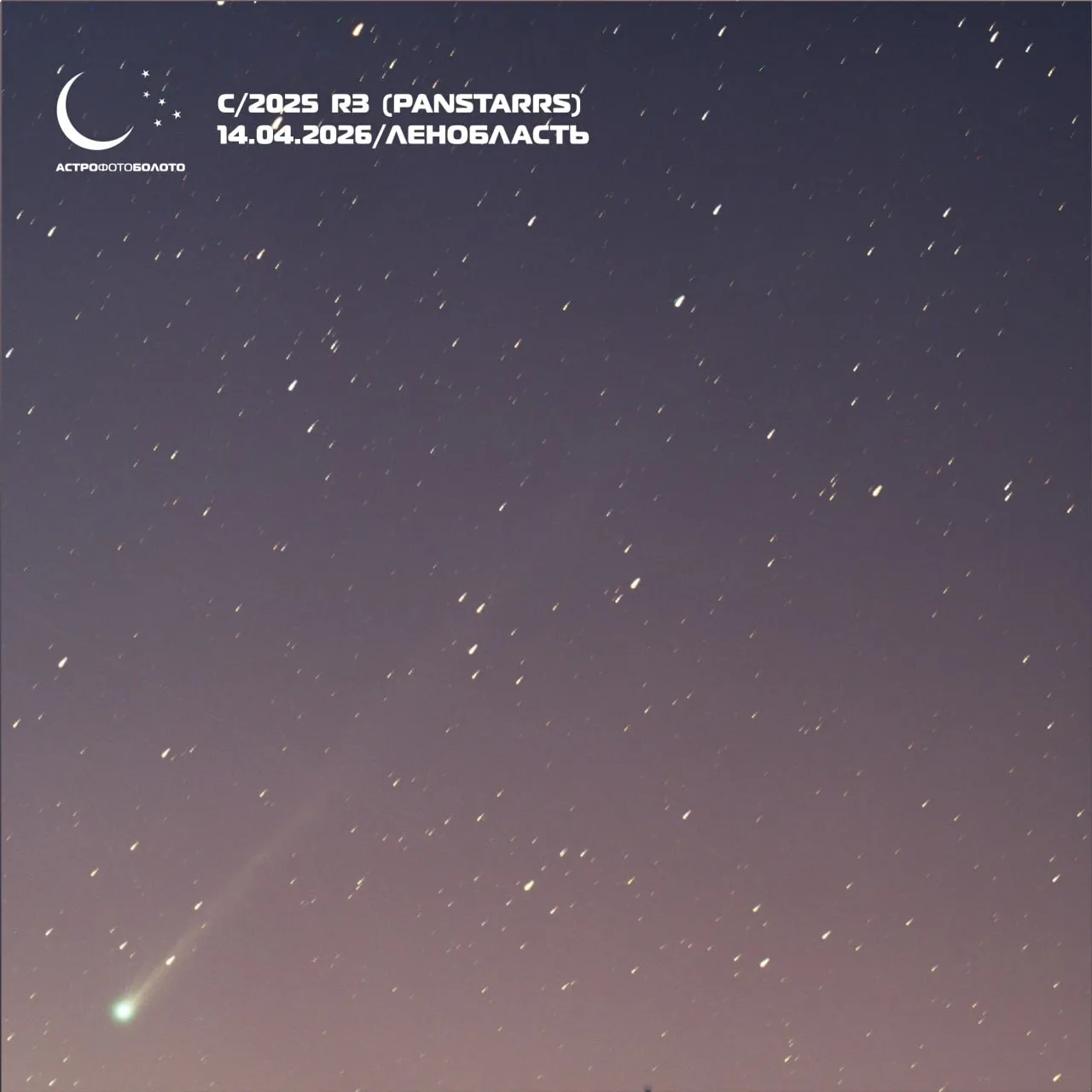 Ранним утром во вторник, 14 апреля, в небе над Ленинградской областью наблюдали комету C/2025 R3. Чтобы запечатлеть небесное тело, любителю астрономических фотографий пришлось вставать в полночь и ехать за сотни километров от города.