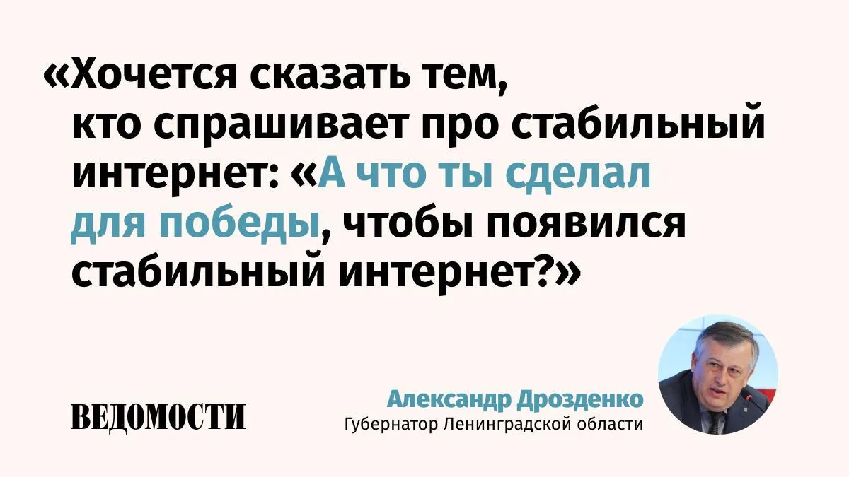 Губернатор Ленинградской области Александр Дрозденко отреагировал на жалобы на работу мобильного интернета, пишут "Ведомости".