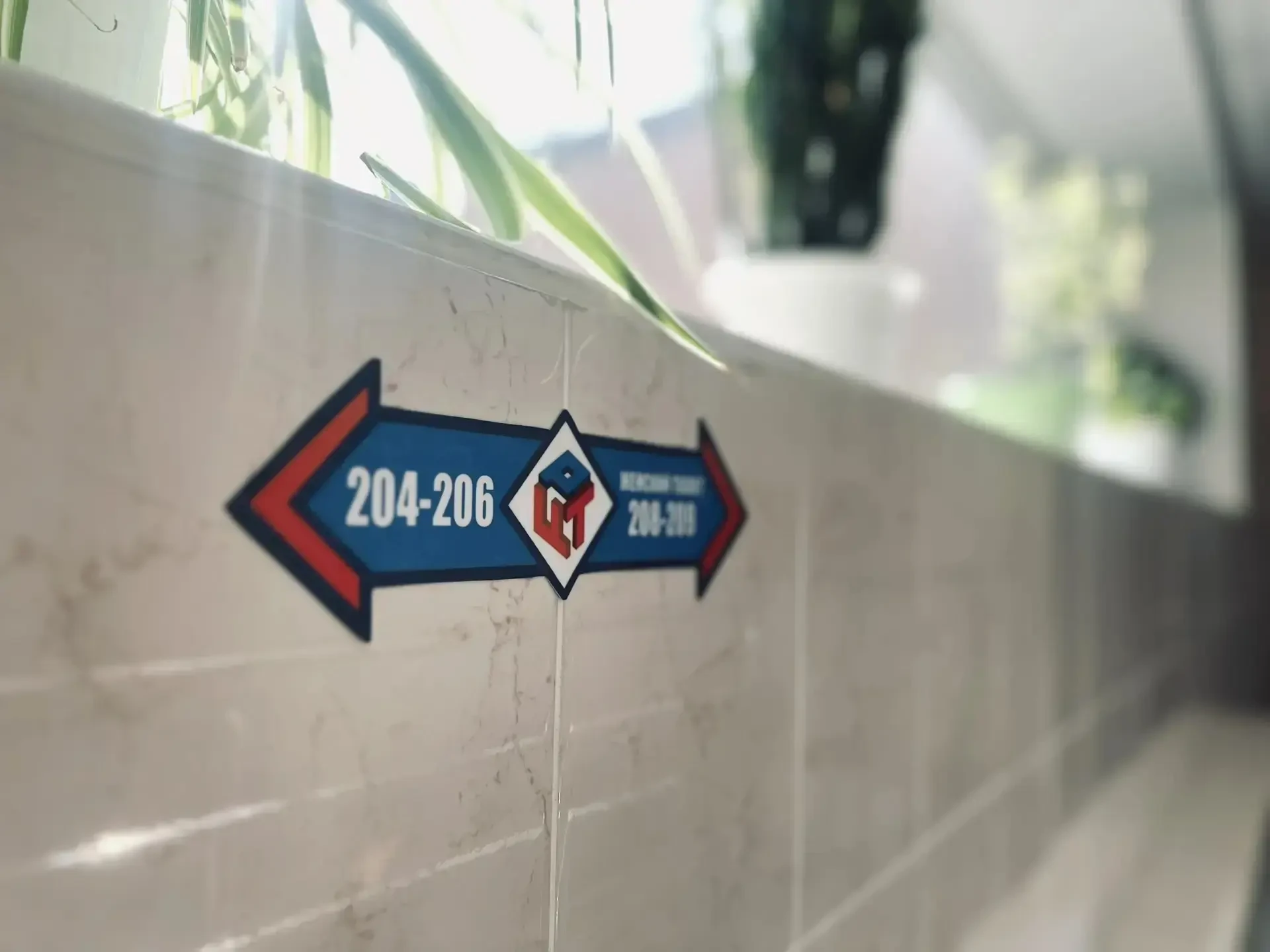 На старте проекта экспертами был проведён опрос посетителей и сотрудников, по итогам которого ключевой проблемой оказалась непонятная система расположения кабинетов. После детального изучения здания и перемещений в нём, были установлены таблички с номерами кабинетов и названиями помещений, размещён план здания с указателями, внедрена визуальная навигационная система.
