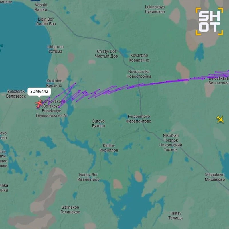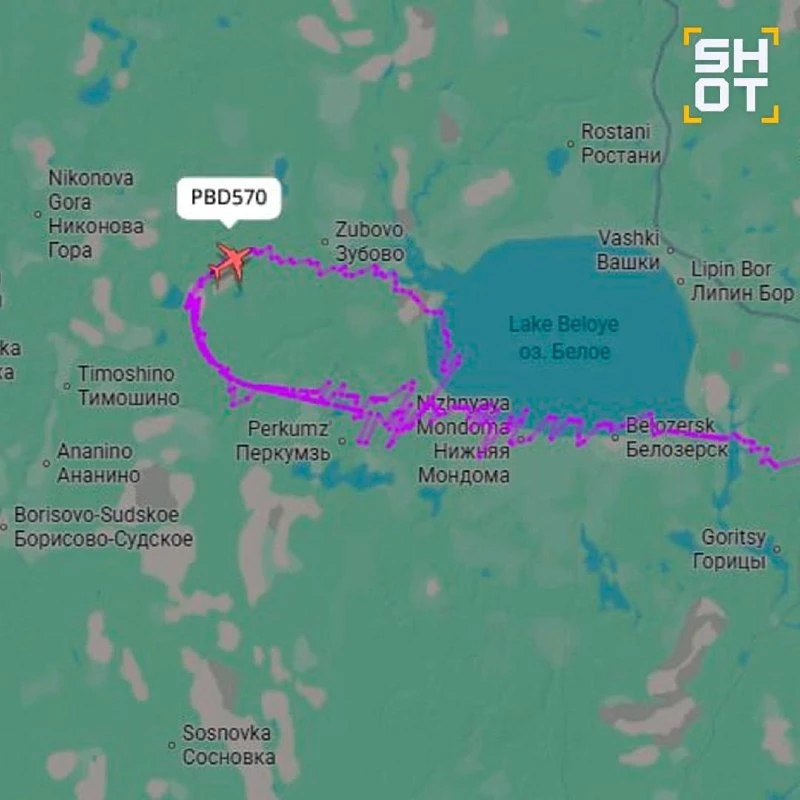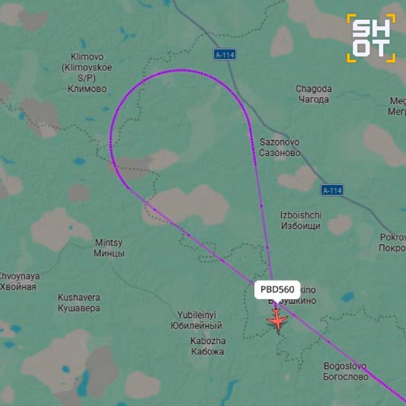 По данным SHOT, самолёт Air Cairo из Шарм-эль-Шейха кружит в районе Пскова. Ещё два борта «Победы» и два самолёта «России» находятся в небе над Вологодской областью.
