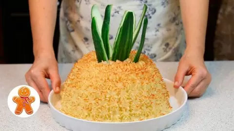 Когда все элементы готовы, сформируйте торт, укладывая пюре и начинку слоями, придавая форму ананаса. Завершите оформление, посыпав паприкой и украсив свежими огурцами. Все вместе создаст настоящий кулинарный шедевр.