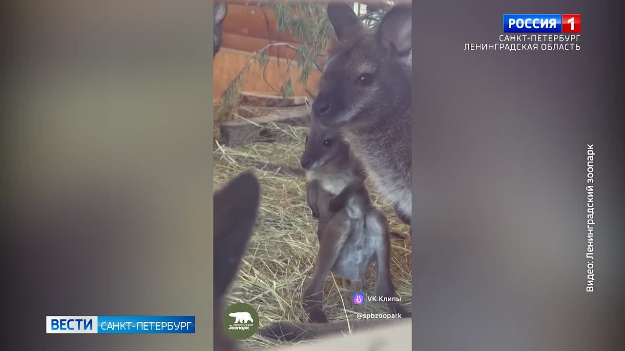 Пополнение в Ленинградском зоопарке. Сразу четыре кенгуру Беннетта выращивают потомство. Их малыши уже вылезли из сумок - бегают по вольеру и играют. Сама беременность у этих животных длится всего месяц. Детеныши появляются на свет совсем крошечными. Весят меньше одного грамма.