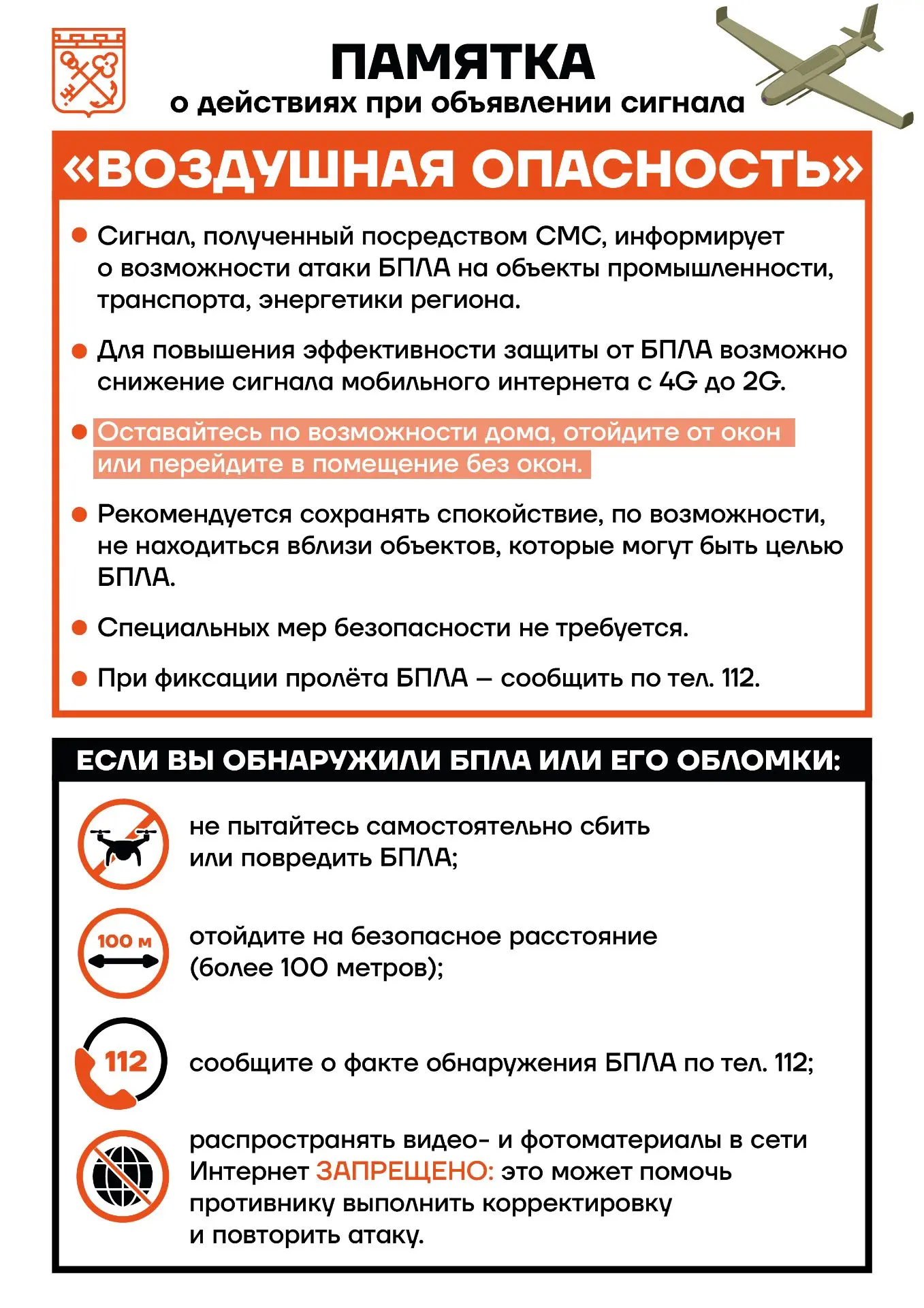 Комитет правопорядка и безопасности Ленинградской области напоминает правила действий при объявлении беспилотной опасности: