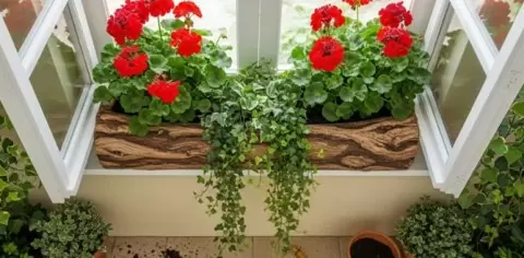 - Оконные рамы с цветами. Старая оконная рама может стать стильным цветочным ящиком, если прикрепить ее к стене и посадить под ней клематисы или герани. Это создаст ощущение уюта и укажет на ваше внимание к деталям.