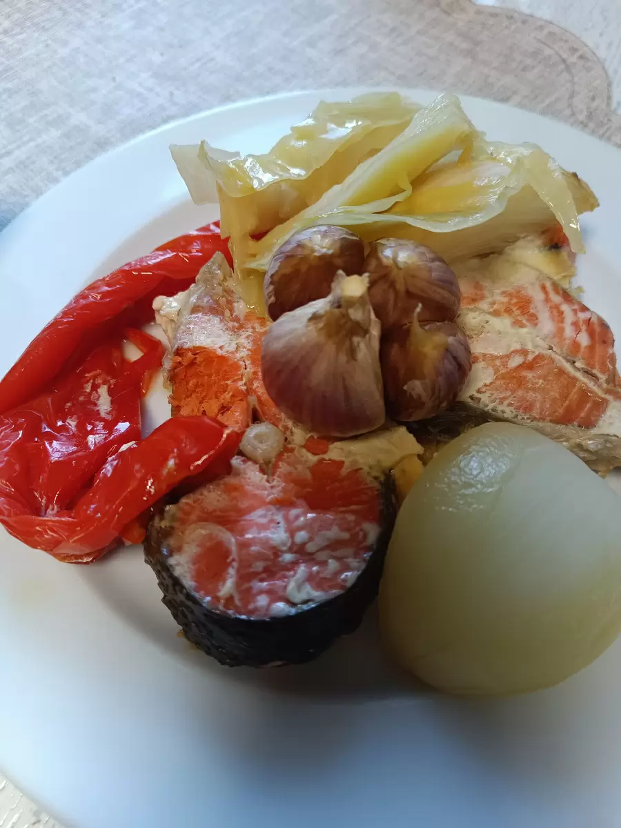 Запеченная рыба с овощами