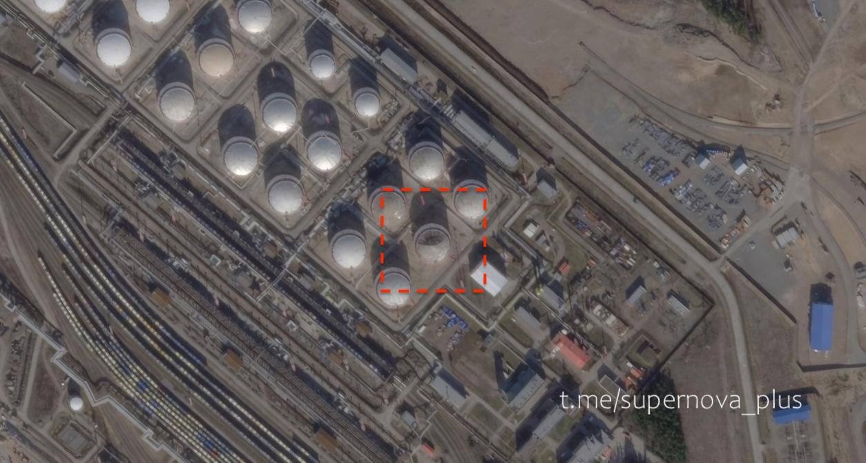 «Ленинградская область. Спутниковые снимки резервуарного парка в порту Высоцк.В результате атаки БПЛА 18.04 был поврежден один пустой резервуар на нефтебазе РПК-Высоцк «ЛУКОЙЛ-II».Вражеские сводки