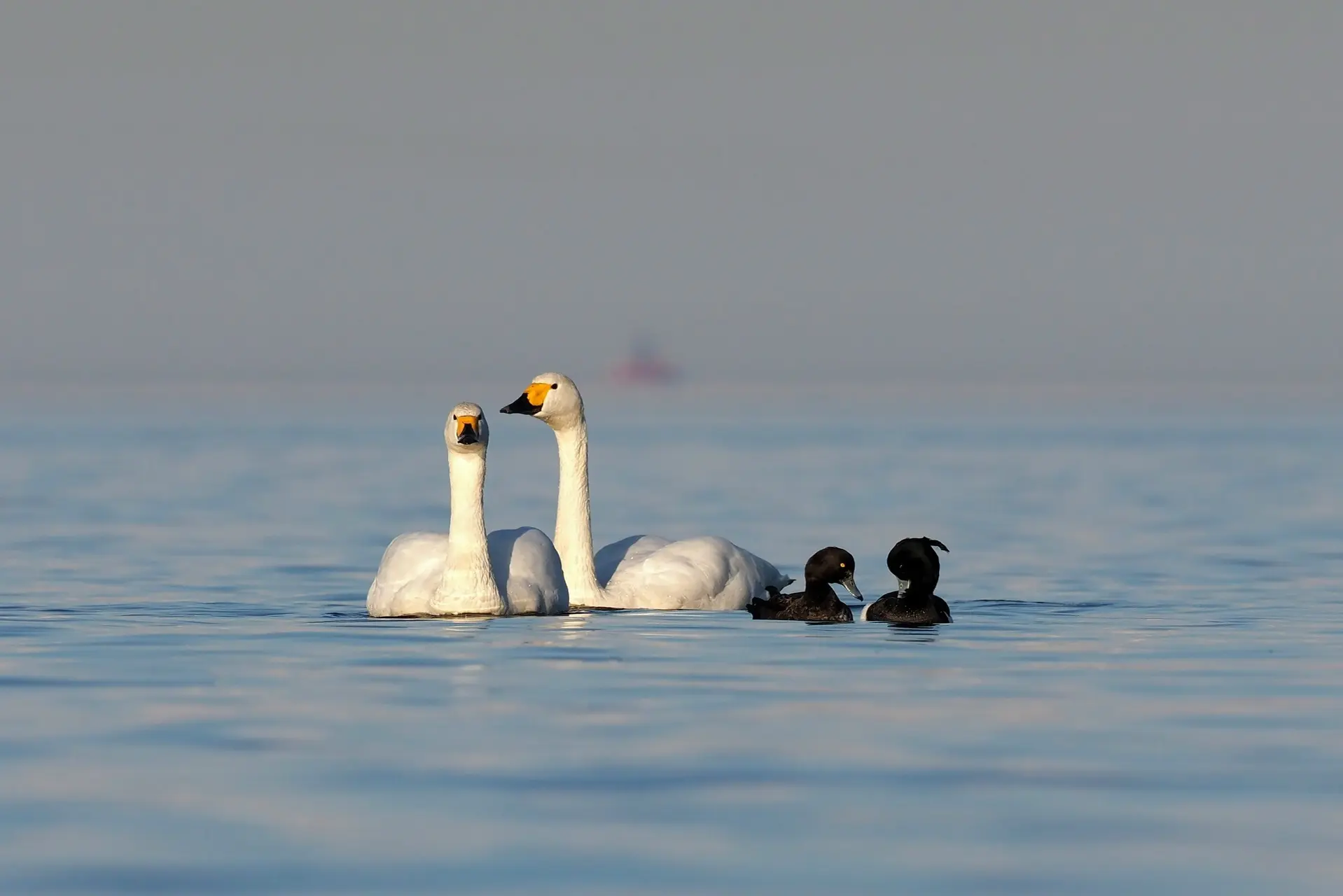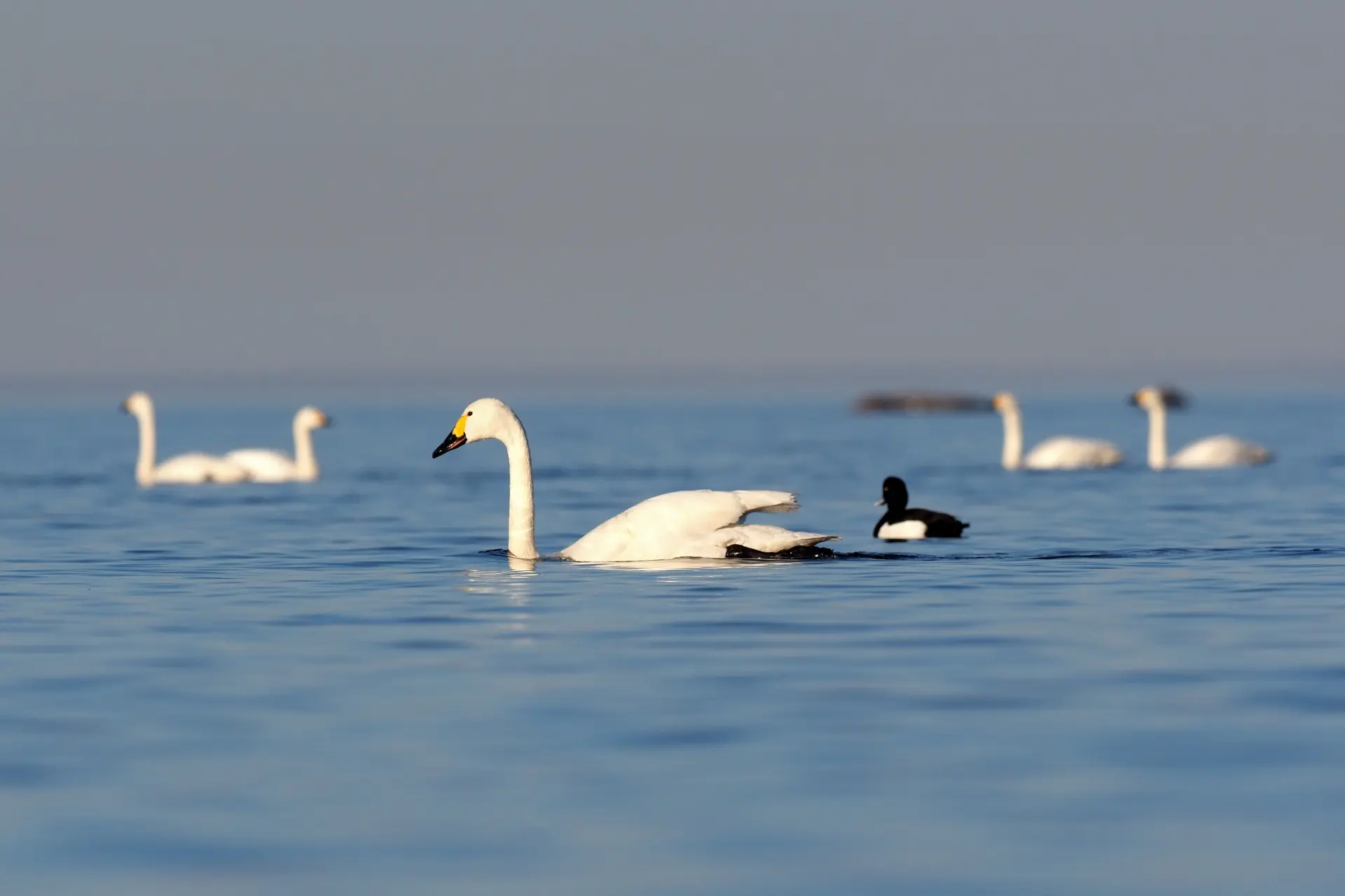 Краснокнижные малые лебеди остановились на отдых в Ленобласти