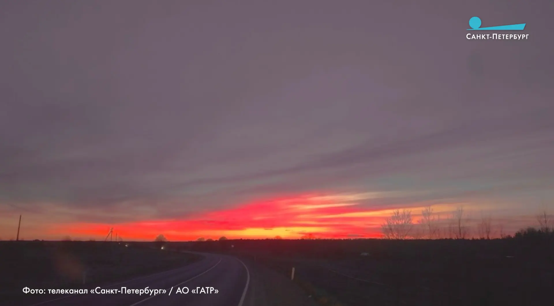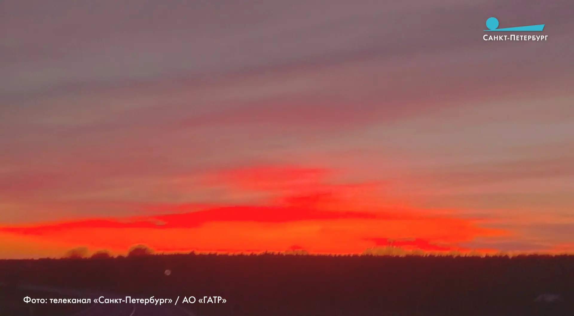Огненный закат озарил небо над Петербургом.