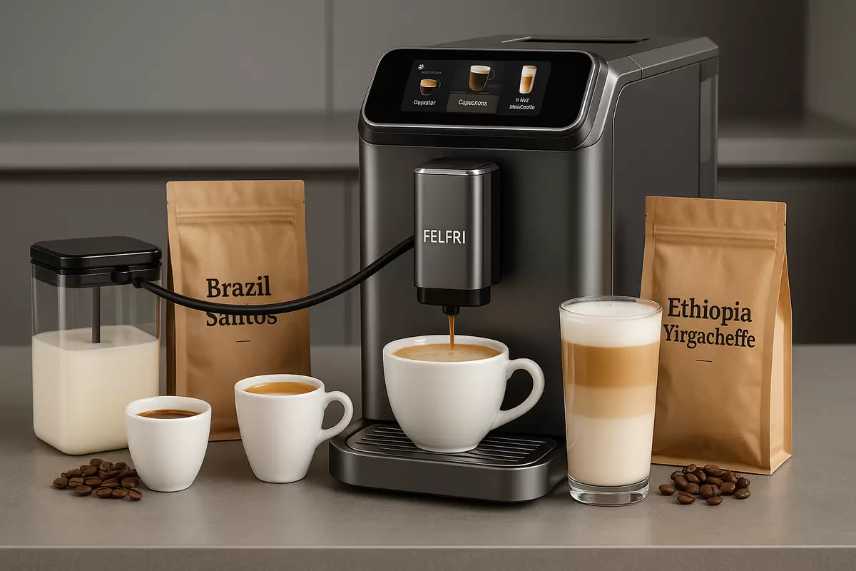 Автоматическая кофемашина FELFRI FCM-006 предлагает впечатляющие возможности: 20 бар давления, 12 режимов приготовления и автоматическое очищение. Это устройство обеспечивает равномерную экстракцию, что особым образом влияет на сладость без добавления сахара. Такой агрегат станет отличным помощником для настоящих гурманов.