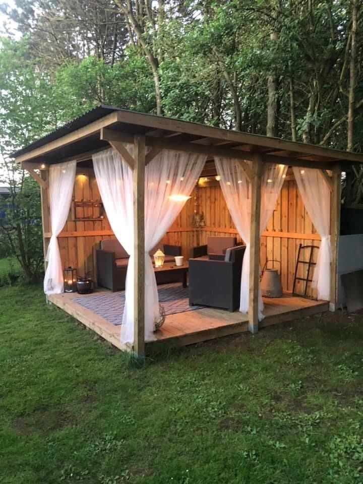 - Беседка: Такое укрытие отлично защитит от солнца, а если добавить уютные подушки, это станет излюбленным местом для всей семьи.