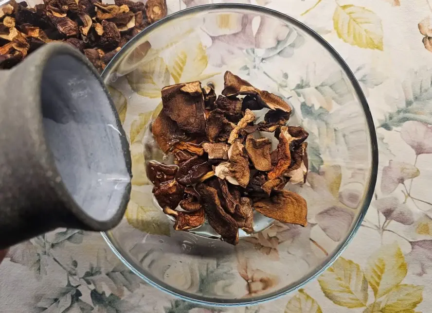 Существует распространенное мнение, что горячая вода помогает быстрее вернуть сушеным грибам их консистенцию. Однако это не так. Высокая температура разрушает структуру грибов, вымывая при этом те свойства, которые делают их вкус столь восхитительным. В результате, несмотря на внешнюю мягкость, грибы теряют свою магию.