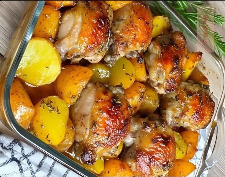 В результате получается ужин, который, несмотря на простые ингредиенты, имеет совершенно другой уровень. Картошка мягкая и румяная, курица нежная, а аромат наполняет всю кухню, заставляя заглядывать раньше времени. И, что немаловажно, это блюдо не требует сложной подготовки, но дарит ощущение полноценного ужина.
