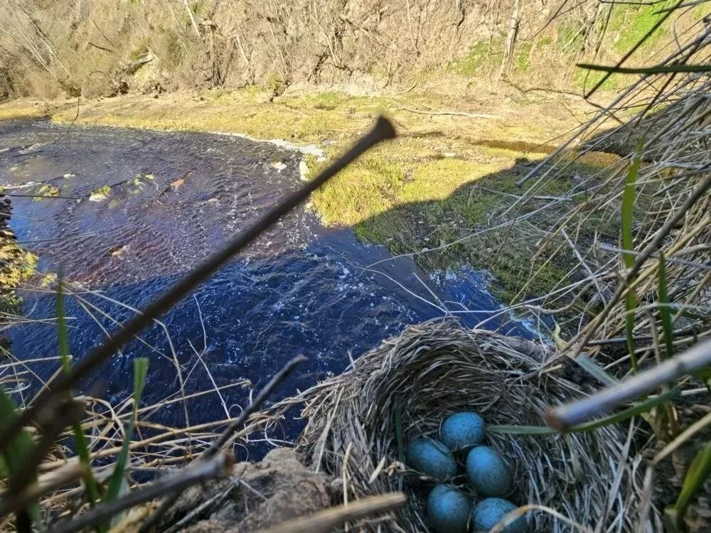 Инспектор дирекции ООПТ Ленинградской области обнаружил гнездо дрозда-белобровика на кладке моста через реку Лава. Птицы решили вывести потомство в тихом и комфортном месте - на охраняемой территории. В гнезде у пернатых уже есть пять голубоватых яиц.