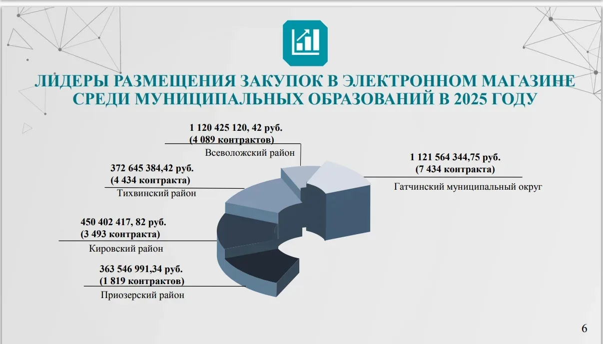 Но без «ложки дёгтя» не обошлось. Электронный магазин Ленинградской области работает, доля муниципальных закупок через него выросла с 4% в 2023 году до 24,6% в 2025-м. Солидно. Однако все еще есть районы, где этот инструмент используют минимально. Поручил коллегам разобраться: что мешает активнее внедрять удобный и экономный механизм? Задача на 2026 год — выйти на 50% муниципальных закупок через агрегатор.