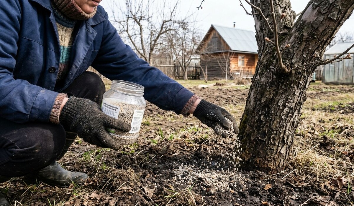 Когда земля еще холодная и корни начинают пробуждаться, растениям необходим «быстрый» азот. Лучший выбор на данном этапе — аммиачная селитра. Гранулы следует равномерно распределить по приствольному кругу, рассчитывая 20–30 грамм на квадратный метр. Слегка заделать в почву граблями. Для ягодных кустарников, таких как смородина и крыжовник, полезным будет обливание кипятком, что поможет пробудить корни и уничтожить зимующих вредителей.